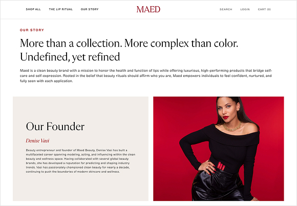 MAED is a beauty and makeup company founded and run by Denise Vasi, a name we all know. Maed is a clean beauty brand with a mission to honor the health and function of lips while offering luxurious, high-performing products that bridge self-care and self-expression. Rooted in the belief that beauty rituals should affirm who you are, Maed empowers individuals to feel confident, nurtured, and fully seen with each application.